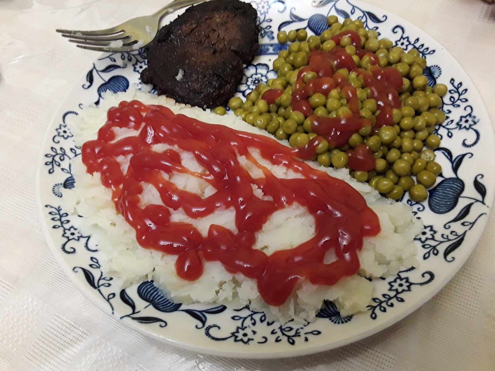 A typical weeknight supper consisted of a heaping plate of mashed potatoes, a 3 ounce piece of deer or moose steak, fried in shortening, and cooked so well it was black and hard with a 2 cm tough crust all the way around, and a spoonful of canned peas or yellow beans from the garden if in-season. If we were lucky there would be gravy to add moisture to the meal and make it more palpable. I always added a generous squirt of ketchup and as much of Mom’s homemade mustard pickles as I could get away with taking.